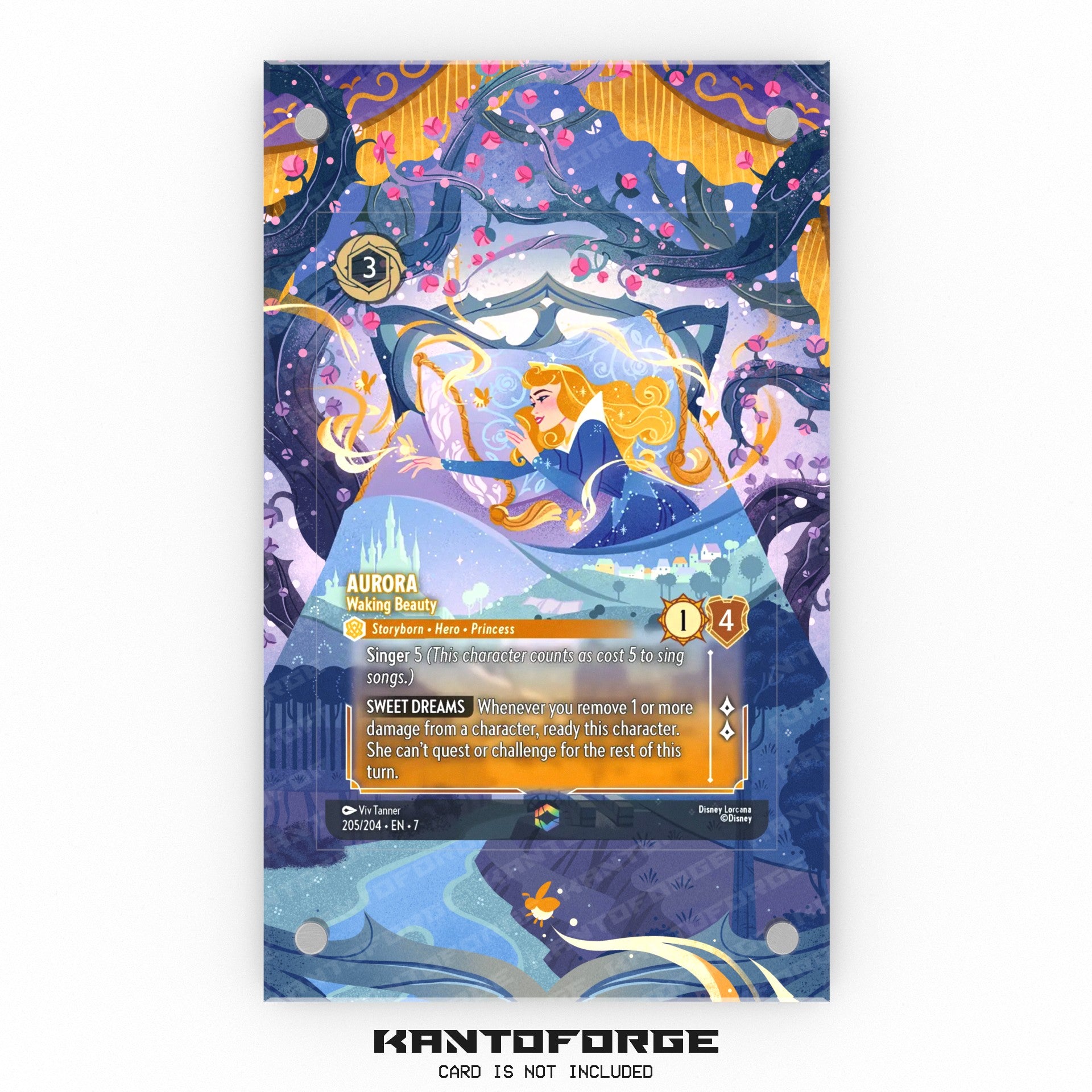 Elevate your Disney Lorcana trading card display with our premium UV protective acrylic case. Expertly designed to protect your card from harmful UV rays, it ensures both longevity and vibrancy. What sets our case apart is the integrated digital artwork extension, seamlessly broadening the narrative of your specific card's design. The clear acrylic provides a pristine view, allowing the card and its extended artwork to shine brilliantly. Ideal for both emerging and seasoned collectors, our display case merges protection with unparalleled aesthetics. Dive deeper into the Lorcana universe and present your card in a manner it truly deserves.