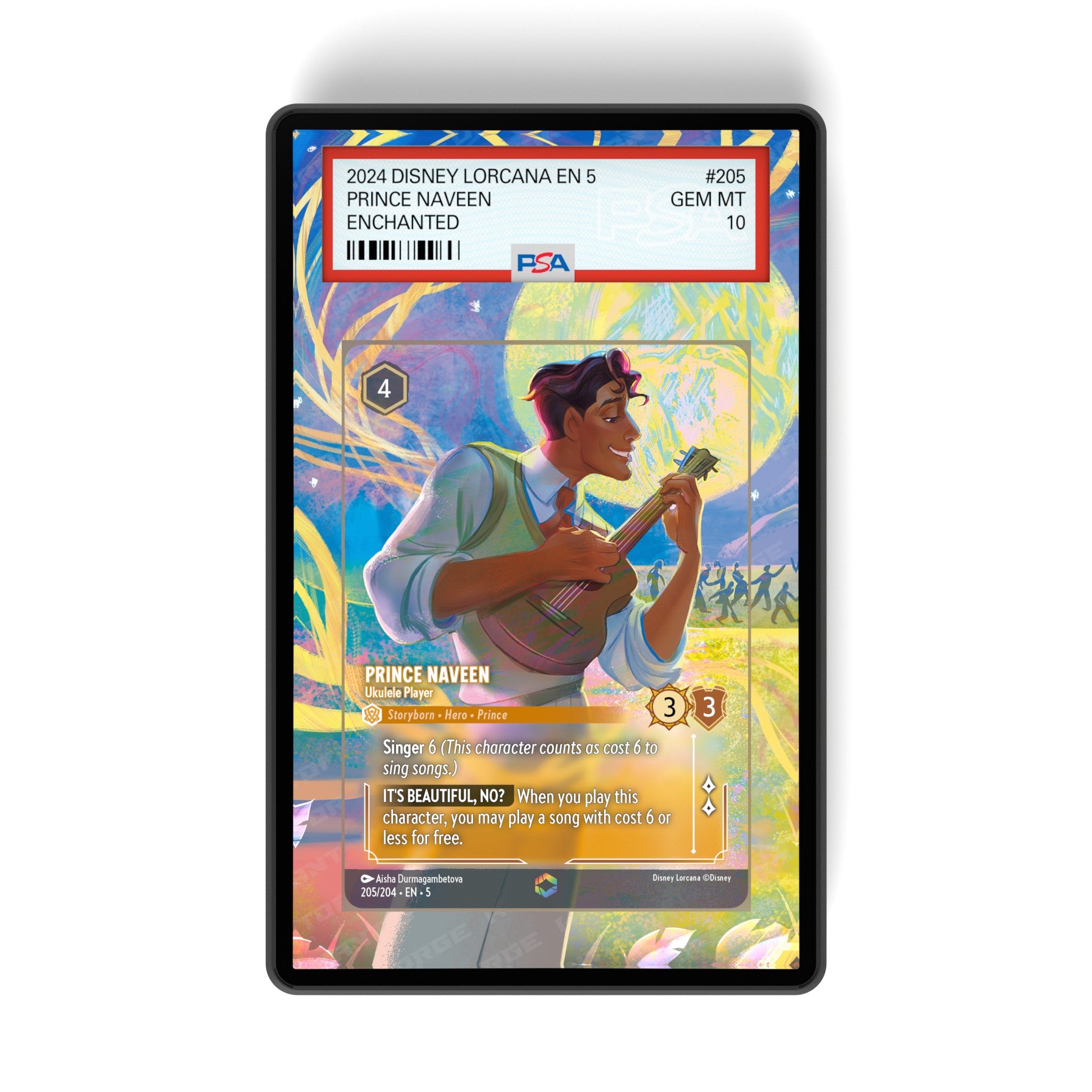 Prince Naveen - Ukulele Player (Enchanted) Chapter 5 - PSA Size Graded Card Case Extended Artwork Display with GradeGuardian Protection