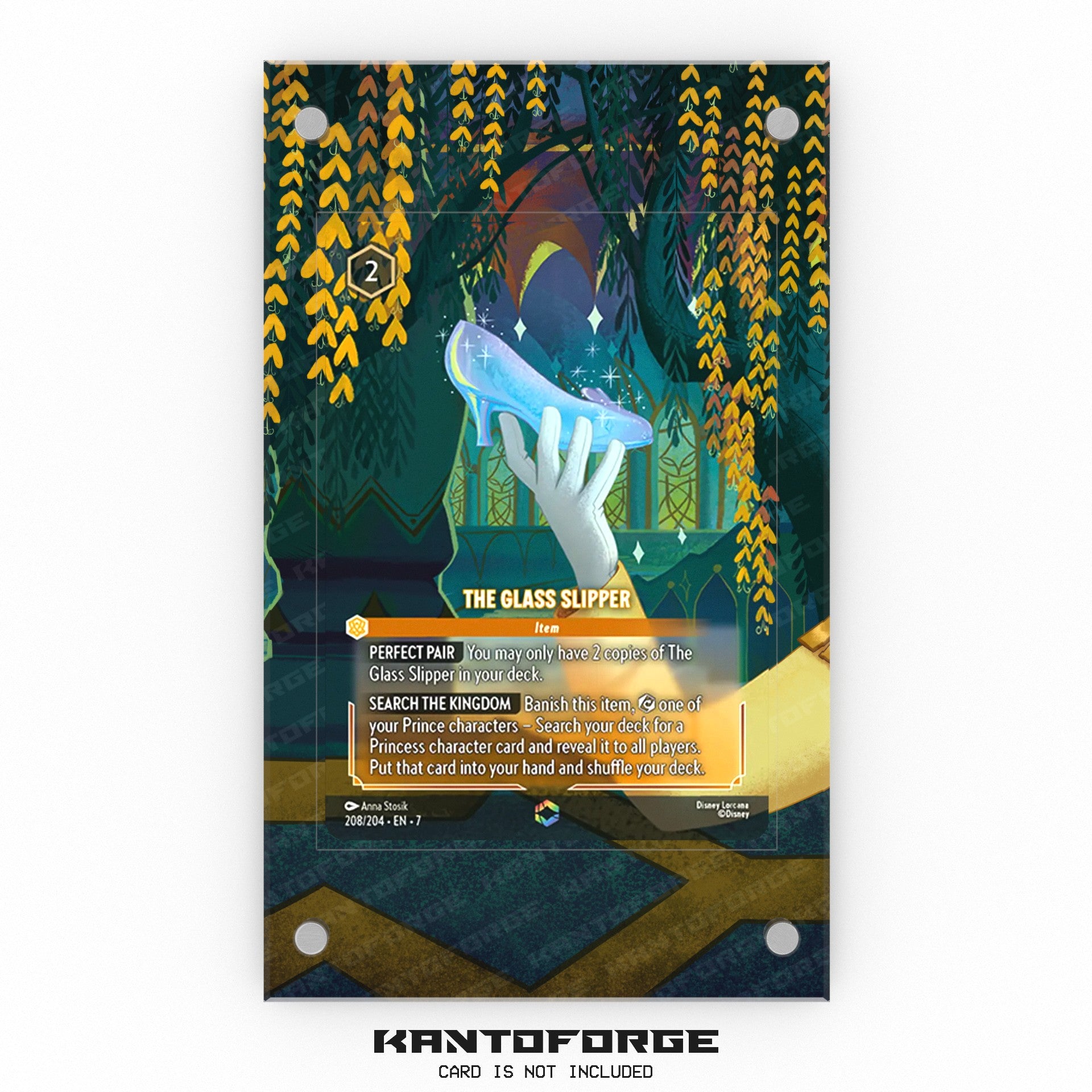 Elevate your Disney Lorcana trading card display with our premium UV protective acrylic case. Expertly designed to protect your card from harmful UV rays, it ensures both longevity and vibrancy. What sets our case apart is the integrated digital artwork extension, seamlessly broadening the narrative of your specific card's design. The clear acrylic provides a pristine view, allowing the card and its extended artwork to shine brilliantly. Ideal for both emerging and seasoned collectors, our display case merges protection with unparalleled aesthetics. Dive deeper into the Lorcana universe and present your card in a manner it truly deserves.