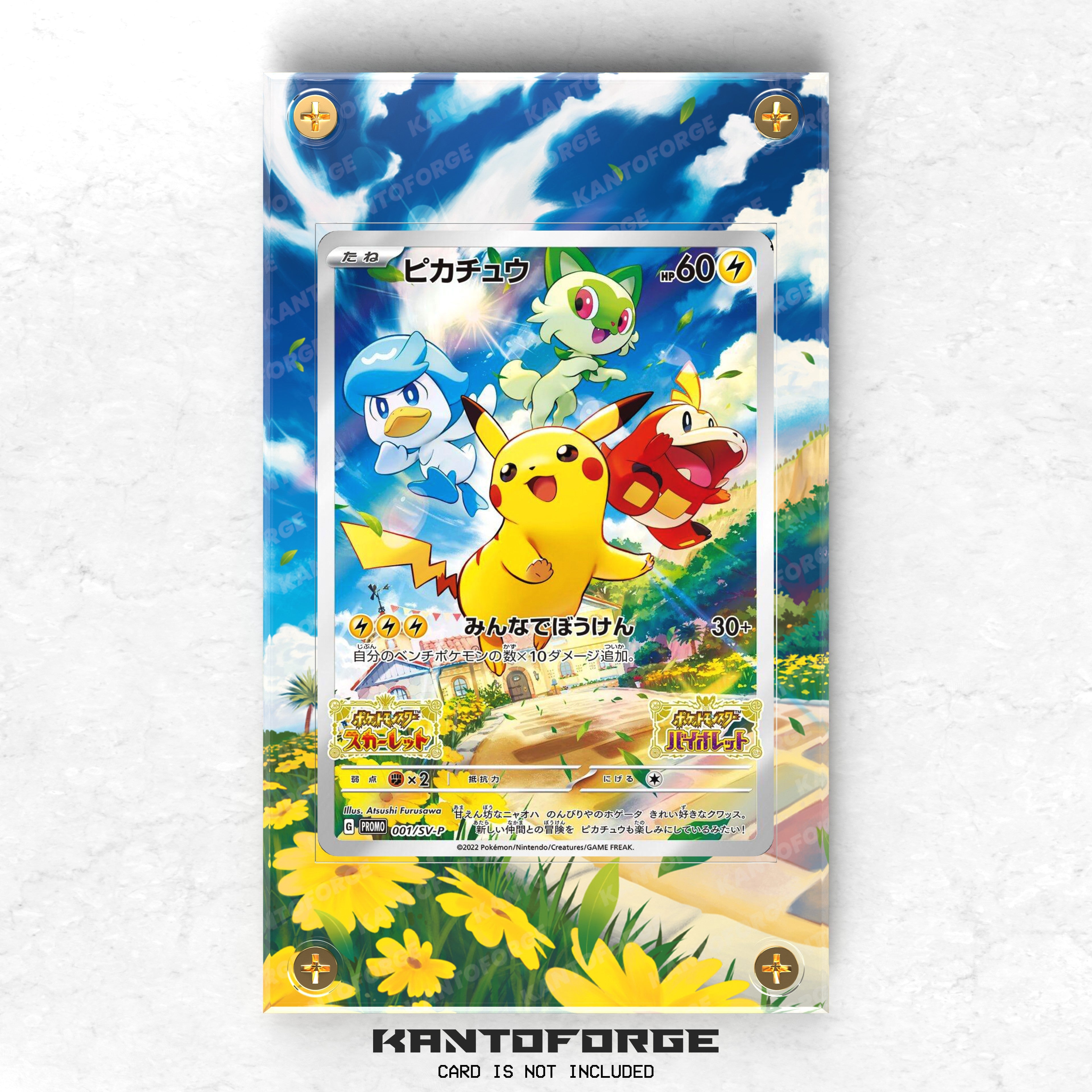 Pikachu Promo SVP 027 - Scarlet & Violet - Paldea Evolved - Pokémon Extended Artwork Protective Card Display CaseCard Information: - Featured Pokémon: Pikachu - Card ID: SVP 027- Expansion: Paldea Evolved - Scarlet & Violet- S&V SVP 027What’s included:  - 1 x Acrylic Screw Down Protective Case- 1 x Extended Art BackgroundKey...